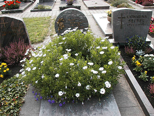 ... tja, das Recht des Stärkeren ... auch auf dem Friedhof ... Das weiße Kapkörbchen hat die Verbenen fast vollkommen verdrängt ... Und nun, Ende September war es an der Zeit, die Winterbepflanzung vorzunehmen ...
