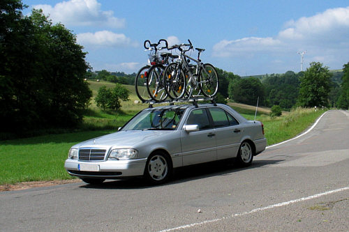 Also gibts hier mal einen recht neuen Mercedes mit 3 Fahrrädern.