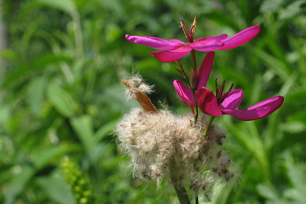 Samen einer Anemone und eine daneben stehende Lichtnelke, was eine ganz individuelle Komposition ergibt. weiter