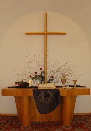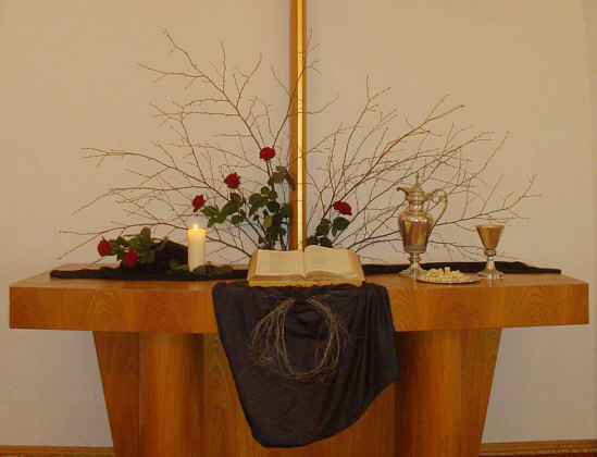 zeigte mir den für Ostern geschmückten Altar in ihrer Kirche: