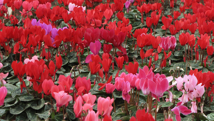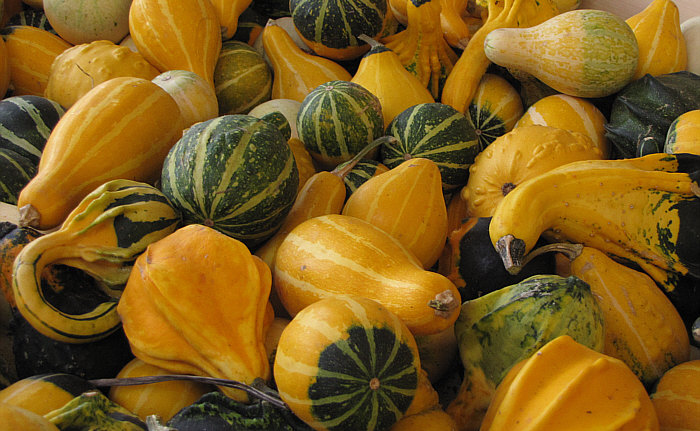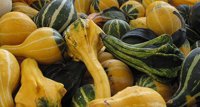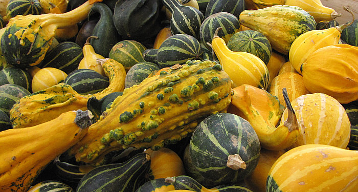 den Herbstfarben, den Alpenveilchen, Zierkürbissen und der