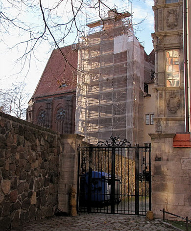 der Villa Kamecke und dem Hofportal des Markischen Museums.