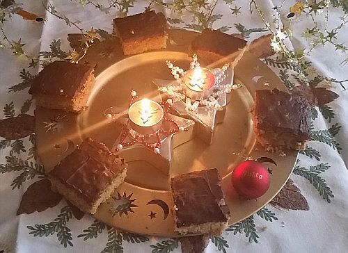 Wer hat gebacken ? Lina Wie hat das mit dem Schütteln geklappt ? Habe aber alle Zutaten plus etwas Natron in die Küchenmaschine gegeben ... kurz durchgerührt und auf ein mit Backpapier ausgelegtes Backblech aufgetragen. Wie hat der Lebkuchen geschmeckt ? Habe ihn in Rechtecke geschnitten und davon genascht. Trotz Zuckermenge kam er mir überhaupt nicht süß vor. Auweia... da sah ich das Schüsserl mit Zucker neben der Küchenmaschine stehen. Da habe ich weiße Schokoladenglasur aufgetragen... und er schmeckte mir hervorragend. Den Lebkuchen mache ich bestimmt wieder... und dann lasse ich gleich bewusst den Zucker weg. |