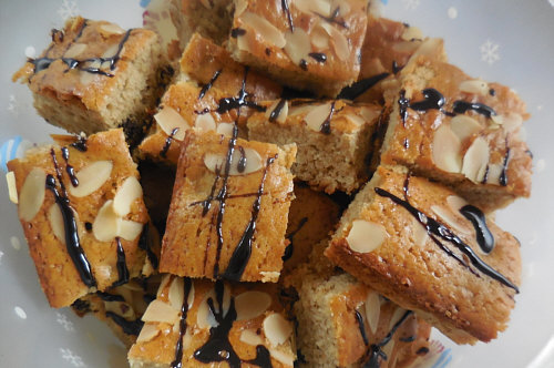 Wer hat gebacken ? Doris (dodo) Wie hat das mit dem Schütteln geklappt ? Das war allerdings gar nicht so unkompliziert, wie es sich anhört. Das eigentliche Backen schon. Aber die Zutaten ... gehäutete Mandeln hatte ich keine, also selber auspacken (na ja, die stehen ja auch nicht direkt im Rezept) ... Haselnüsse gibt's zurzeit nirgendwo zu kaufen, zumindest nicht zu einem annehmbaren Preis. Aber es hat sich mir doch noch eine Quelle aufgetan :). Ja, dann also alle Zutaten bereitgestellt und gedacht: 300 g Zucker ist wohl doch ein bisschen viel. Ich hab 200 g genommen, und das reicht völlig. Das mit dem Schütteln war so, dass das mit den trockenen Zutaten erwartungsgemäß recht einfach ging. Für das Schütteln mit den "nassen" Zutaten zusammen hatte ich dann aber nicht lange genug ausreichend Kraft. Ich hab dann eben mit einem Löffel alles gut vermischt und mich gefragt, ob das nicht auch geklappt hätte, wenn ich von Anfang an alles mit dem Löffel vermischt hätte. Dann hätte ich mir das Abwaschen des Deckels sparen können, denn da ist natürlich ziemlich viel Teig hängen geblieben. Wie hat der Lebkuchen geschmeckt ? Die Lebkuchen schmecken echt gut. Ich bin mir nur nicht so ganz sicher, ob sie den Namen auch verdienen. Denn Lebkuchen sind für mich Dauergebäck. Und dieses Rezept hier mit Backpulver - ich kann mir nicht vorstellen, dass das Gebäck bis Weihnachten hält. Aber egal, dann wird's halt vorher vernascht. |