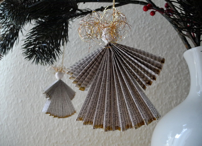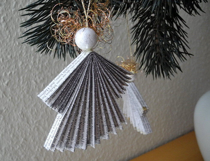 Das ... ... ist metallenes Engelhaar, mit dem die Kleider der Engel verziert sind. Kleider, die aus Buchseiten gefaltet wurden: weiter