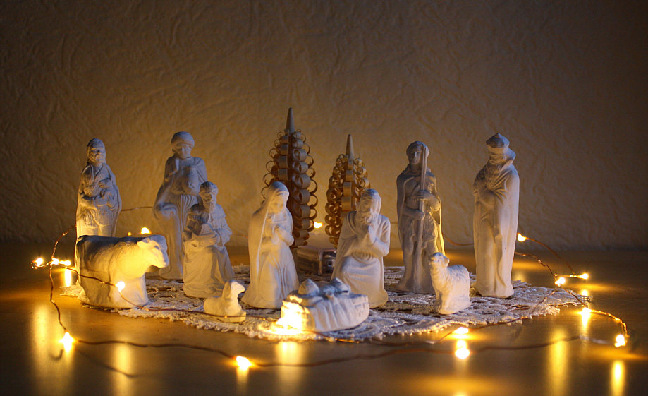 Karin Blick auf die Fensterbank vom Lieblingsplatz aus und Sylvias Krippe.