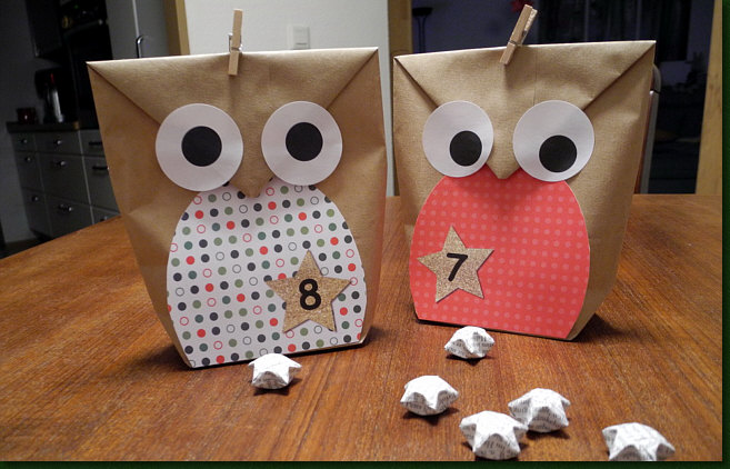 ... und schon haben sich die Adventskalendertüten in Eulen verwandet.