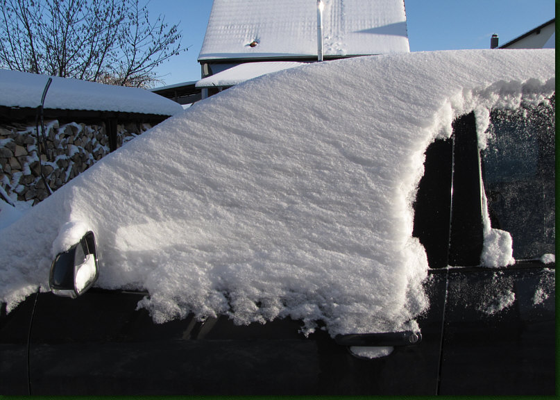 Schnell mal den Schnee am Auto in Richtung Himmel fotografieren ...