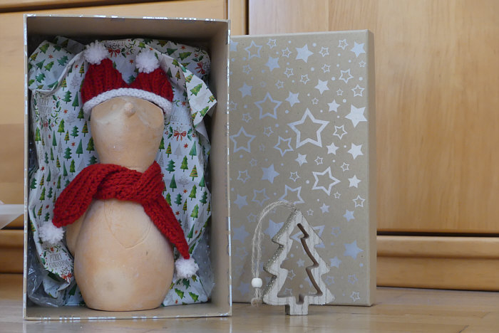 Danach die Verpackung gefunden und das Weihnachtsfüchschen fein gebettet.