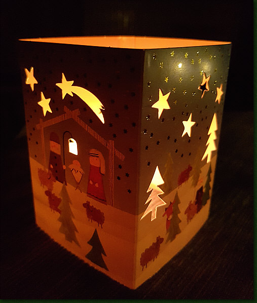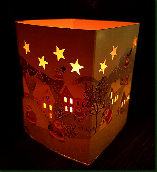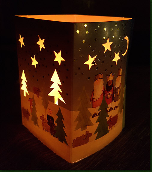 und Beates Karten, die man falten und in die man ein Licht hinein stellen kann.