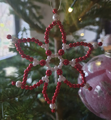 Dabei sind Kugeln (große und kleine) oder Sterne aus Perlen etc."