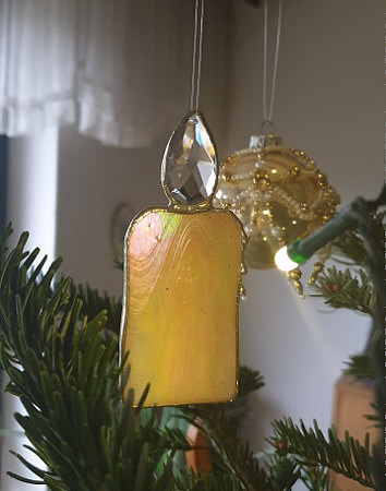in Blei gefasste Kerze mit geschliffener Glasflamme