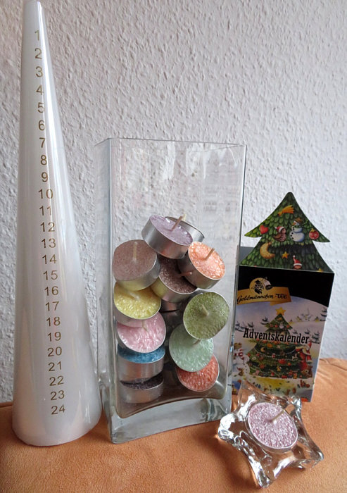 Und bunte Teelichter.