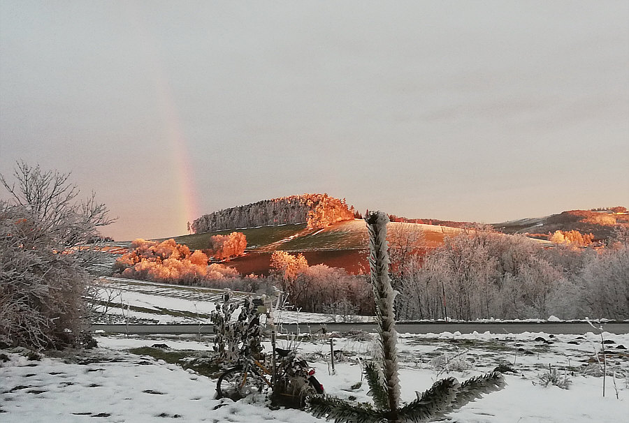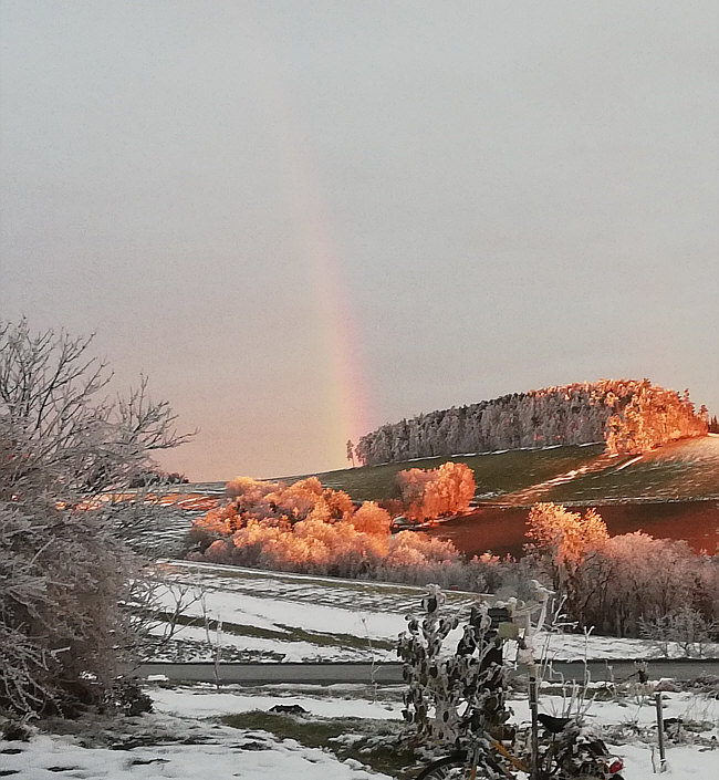 Raureif ... magisches Himmelslicht ... Regenbogen ... so muss der Heilige Abend