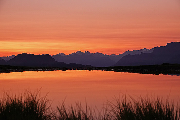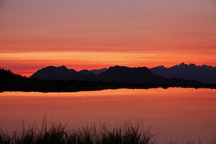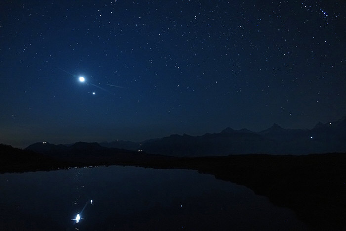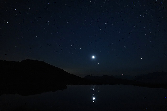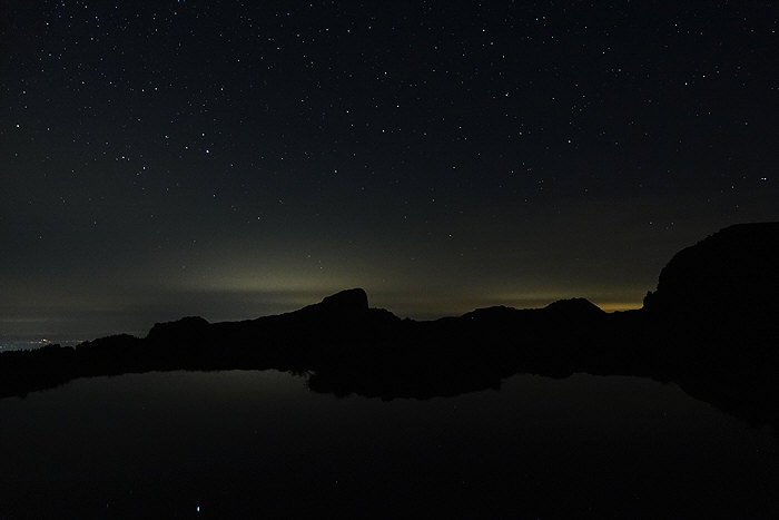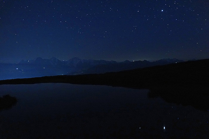 Und es ist wirklich Nacht, als wir oben am See ankommen:
