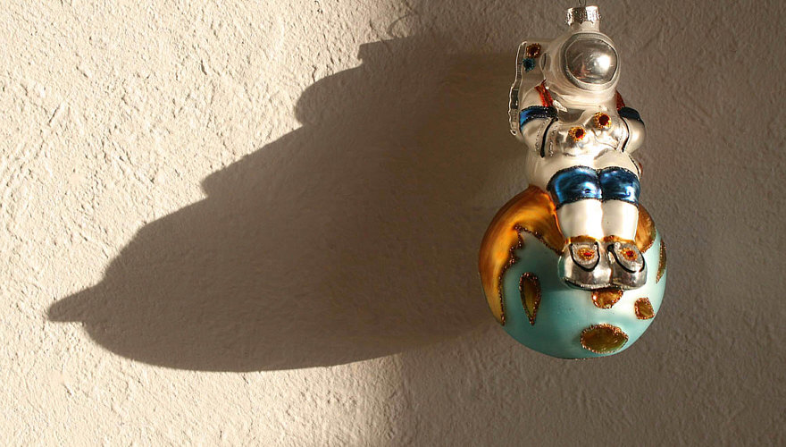 hängt der Astronaut an der Wand ... aber hat einen Schatten fast wie eine Tanne.