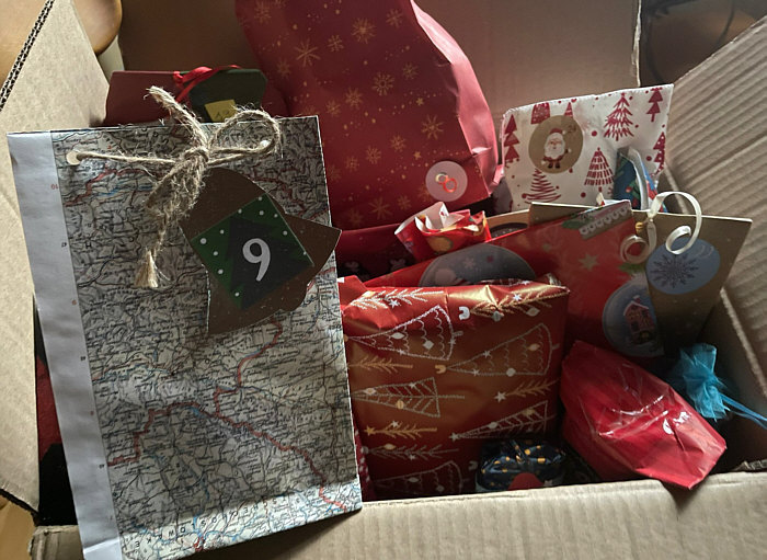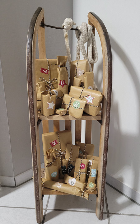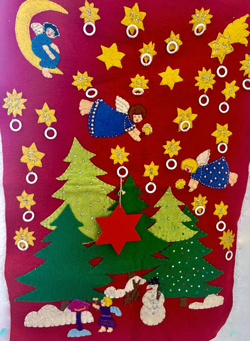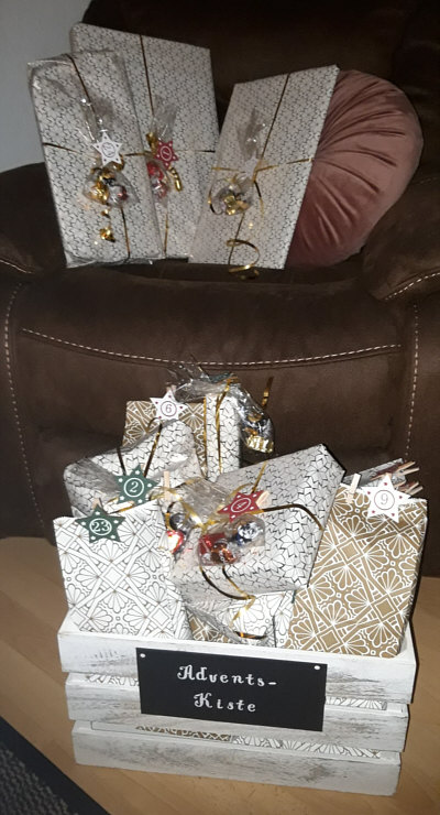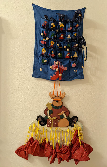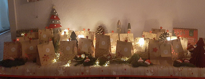 und gehandarbeitet und untereinander zum zweiten Mal der Adventskalender
