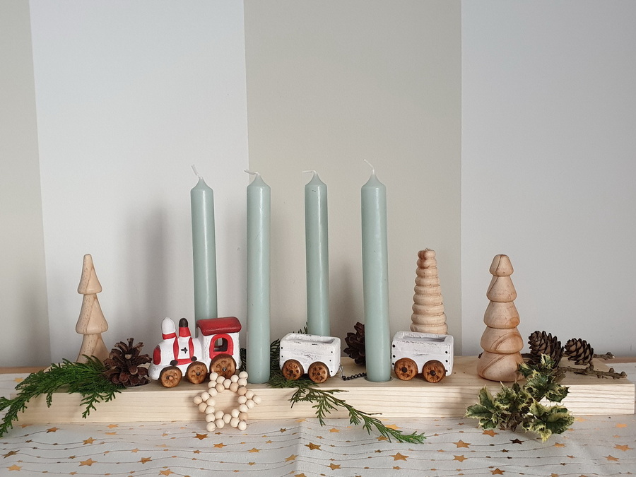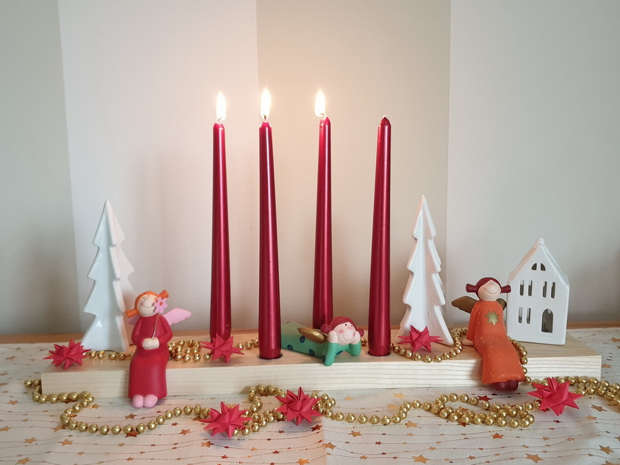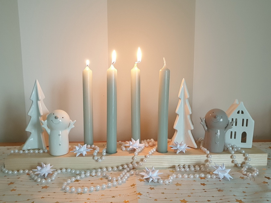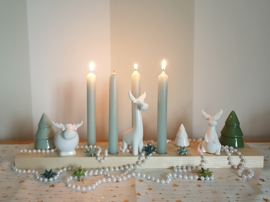 ... hat 9 Kerzentüllen, die je nach Jahreszeit entsprechend dekoriert werden.