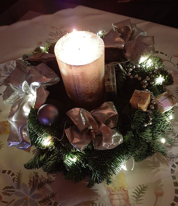Dort ist in diesem Jahr der Adventskranz in Silber gestaltet: