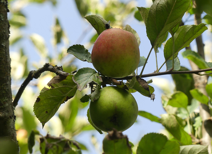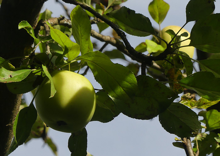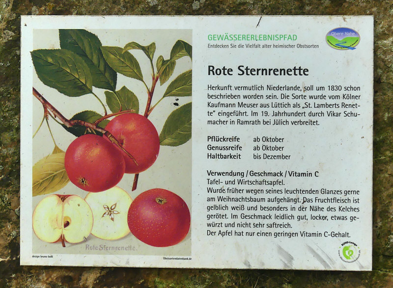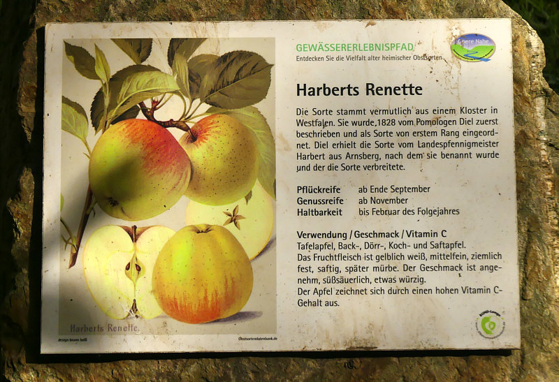 Das ![]() ... ist eine Reihe mit Apfelbäumen. Davor jeweils ein Stein mit einem Schild welche Apfelsorte das ist. Es gibt ja unendlich viele Apfelsorten ... nur merkt man im Supermarkt wenig davon. Die älteste dokumentierte Sorte des Kulturapfels in Deutschland ist vermutlich der Borsdorfer Apfel, der bereits 1170 von den Zisterziensern erwähnt wurde. Vor knapp 150 Jahren ... um 1880 rum waren weltweit mehr als 20.000 Apfelsorten (!!) in Kultur, davon allein in Preußen über 2.300 Sorten. Heute gibt es in Deutschland noch ungefähr 1.500 Sorten, von denen aber nur 60 wirtschaftlich bedeutend sind. Im Gartenhandel und bei Direktvermarktern sind derzeit nur noch etwa 30 bis 40 Sorten erhältlich – Tendenz sinkend. In den Auslagen der Supermärkte schrumpft das Angebot sogar auf nur fünf bis sechs globale Apfelsorten zusammen Nicht nur die Vielfalt, sondern auch die Qualität der Äpfel geht zunehmend verloren. Ich zeige mal ein paar der nicht so bekannten Äpfel, denn in dieser Obstbaumreihe sind mir einige neue Namen begegnet. ![]() ![]() Am Weihnachtsbaum ... interessant. Da oben steht "Pflückreife ab Oktober" ... es lagen schon jetzt, Anfang September, einige Äpfel auf dem Boden ... wir haben mal einen probiert ... ja, stimmt, die Pflückreife ist erst in ein paar Wochen ... noch nicht genießbar, der Apfel. "Leidlich guter" Geschmack ... da gibt es sicher Verbesserungsmöglichkeiten. Am besten einfach zum nächsten Baum gehen ;). ![]() ![]() Pomologe ... es gibt sogar einen eigenen Berufsstand. Interessant ist, dass der Geschmack sich gegen Frühjahr verbessert, der Apfel aber nur bis Januar haltbar ist ;). ![]() ![]() In ganz Europa verbreitet ... ich hab den Namen noch nie gehört. ![]() ![]() Gib mal der heutigen Jugend einen Apfel, der stark weinsäuerlich ist. Was für ein Gegensatz zu den auf süß gezüchteten neuen Sorten. ![]() ![]() Ich grüße alle Landespfennigmeister :). ![]() ![]() Tja, kann leider keinen Apfel zeigen, es hing keiner am Baum und es lag auch keiner darunter. ![]() ![]() Haltbar bis März, das ist doch mal gut. Oder man macht Apfelwein draus, der hält sich noch länger ;). ![]() ![]() Den Namen kannten wir ... und da haben wir auch zwei Äpfel mitgenommen. Zwei, die auf dem Boden gelegen haben ... an die Äpfel an den Bäumen sind wir bei jedem dieser Bäume nicht rangekommen. ![]() ![]() Schon ab Juli/August pflückreif ... da haben wir auch probiert. Leckerer Apfel, davon haben wir ein paar bodenliegende mitgenommen und ich esse gleich einen davon. ![]() ![]() Nicht nur geringes Aroma, auch geringe Anzahl an Äpfeln am Baum ;)). |