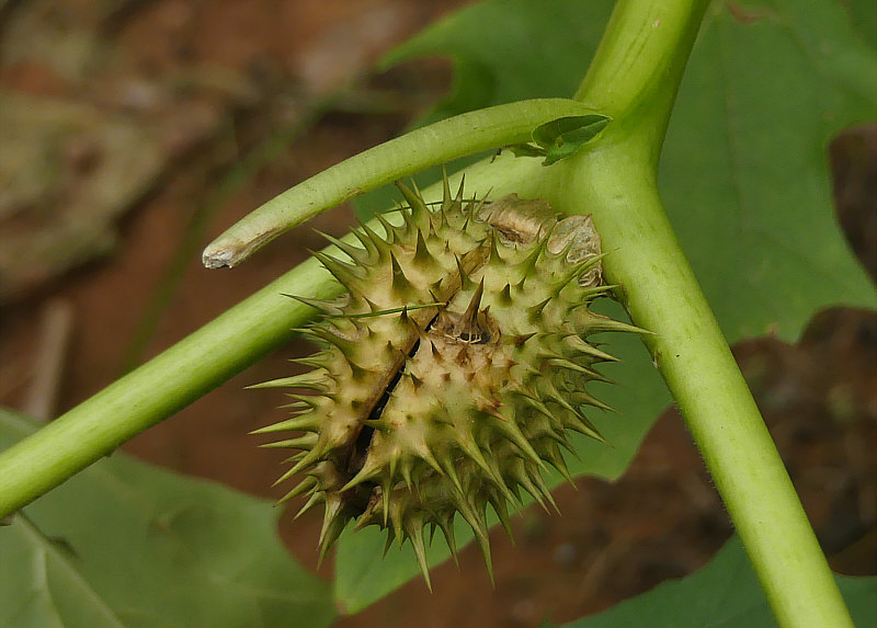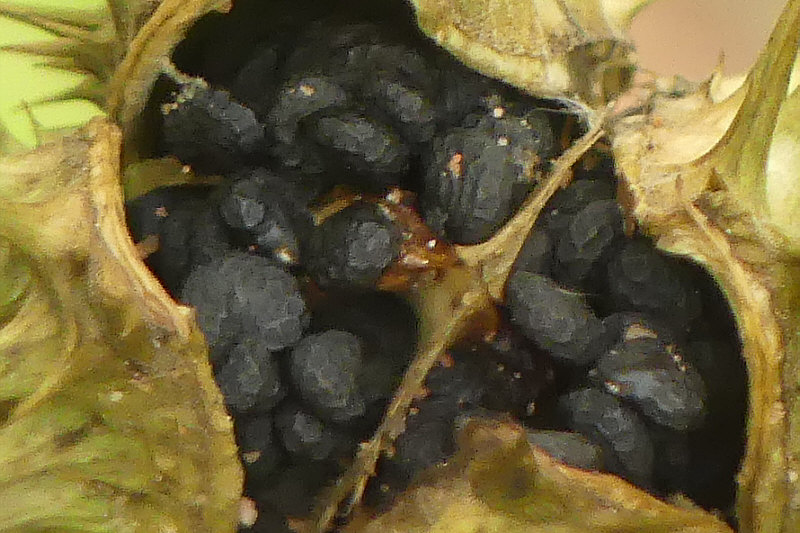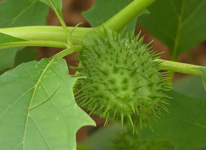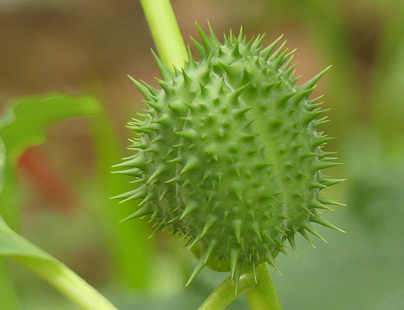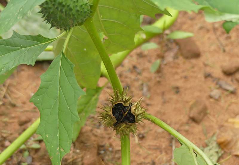 Morgen und übermorgen ist bei uns Dauerregen angesagt ... da wird es noch ein bißchen dauern, bis die Wege im Wald trocken genug sind und wir wieder dort spazieren gehen ... ... also erinnere ich mich einfach an den letzten Spaziergang im Wald. Der fand vor einer Woche statt ... ... und da hatten wir noch ganz am Anfang des Waldes eine interessante Pflanze entdeckt. ![]() ![]() An dieser Pflanze waren so stachelige Samenstände dran ... ![]() ... drei davon sind auf dem Bild zu sehen. Blüten haben wir keine gesehen, obwohl die Blütezeit bis in den Oktober gehen kann und oft gleichzeitig Samenstände und Blüten zu sehen sind. Als Ergänzung ein Bild von Wikipedia ... so sehen die Blüten aus: ![]() Die dann duftenden Blüten öffnen sich erst zur Nacht hin, sie werden hauptsächlich von Nachtfaltern besucht und bestäubt. Die Blüten duften (in der Nacht) stark süßlich-parfümartig; der von vielen als unangenehm empfundene Geruch, stammt dagegen von Stängeln und Laubblättern. Zurück zu den Samenständen ... die musste ich mir mal genauer anschauen: ![]() ![]() ![]() Hier sind sie noch grün ... später werden sie immer gelber ... ![]() ... und dann öffnen sie sich und geben den Samen frei: ![]() Mit Einsetzen der Reife öffnet sich die Kapselfrucht von oben her nur allmählich und gibt die für gewöhnlich 300 bis 500 schwarze nierenförmige Samen frei. Die Ausbreitung der Samen erfolgt durch Tierstreuung oder durch menschliche Aktivitäten. Die Kapselfrüchte sind Wintersteher, die bis ins Frühjahr hinein erst allmählich ihre vielen Samen ausstreuen. Die Samen behalten ihre Keimfähigkeit über viele Jahre. ![]() ![]() ![]() Ich hab mal meine Pflanzen-App befragt ... das ist der "gemeine Stechapfel". Gemein bedeutet hier nicht bös, sondern gewöhnlich. Ein Nachtschattengewächs, von der Gattung der Stechäpfel die häufigste Art in Europa. Alle Pflanzenteile sind giftig, besonders jedoch die Wurzeln und Samen. Der Gemeine Stechapfel enthält (S)-Hyoscyamin und Scopolamin. Bereits Mengen ab 0,3 g können Giftwirkungen wie z. B. gesteigerte Erregung, Sinnestäuschungen, Übelkeit, Pupillenerweiterung mit Sehstörungen und Atemlähmung hervorrufen. Der gemeine Stechapfel wird als Zierpflanze und als Heilpflanze verwendet. Der Stechapfel ist auch als Rauschdroge beschrieben worden, so das Rauchen getrockneter Blätter, Trinken von Teeaufgüssen, Kauen der Wurzel. Der Gemeine Stechapfel ist ein Kosmopolit und wächst in vielen Ländern. In manchen Ländern Europas ist er Neophyt, also ungebeten häufig wachsend und wird dort auch bekämpft. Bei uns wächst er nicht so arg ... er ist nämlich wärmeliebend. Und kommt häufig auf Ruderalflächen vor, die direkt von der Sonne beschienen werden, die also frei sind von beschattend wirkender sonstiger Vegetation sind. Deswegen auch am Waldrand und nicht mitten im Wald. |
