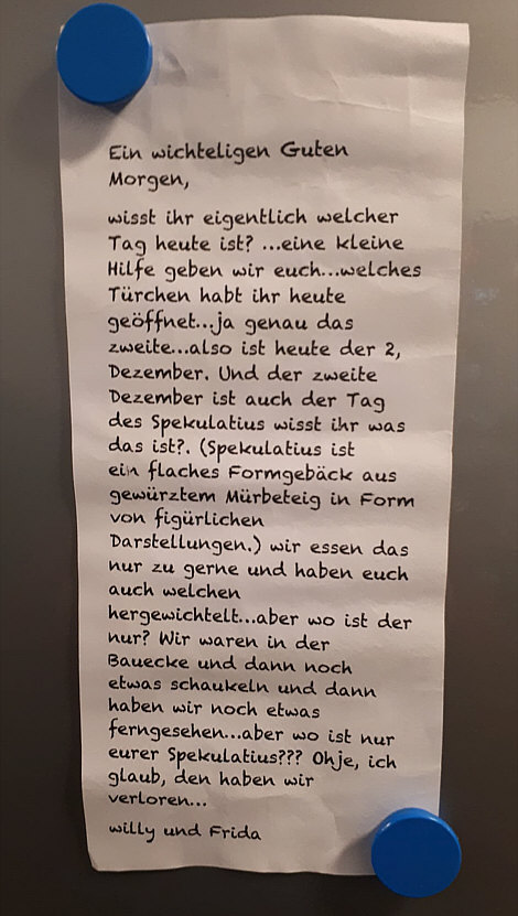 Die Kinder haben dann nach etwas Suchen 2 Tüten Spekulatius gefunden.