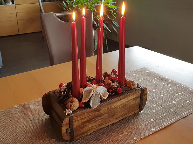 damals eine Ziegelform alle Woche neu dekoriert, jeweils für den Adventssonntag.