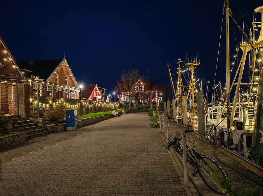 Wir sind im wunderschön illuminierten Hafen des Ortes.