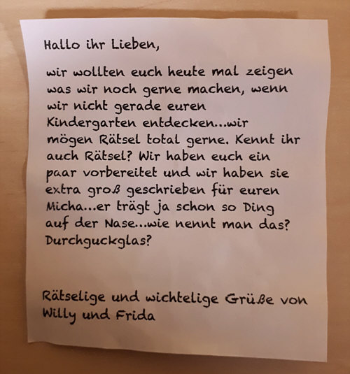 Aber Gudrun konnte sagen, was heute dran sein wird ... es ist Rätseltag: