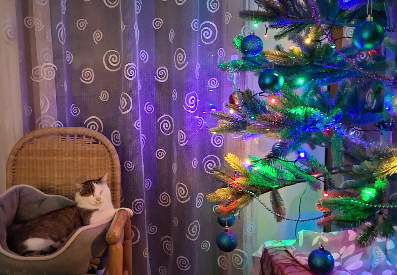 ... sitzt Lucky in der Kiste und himmelt die farbigen Lichter an: