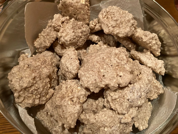 Sind noch warm, deshalb liegen sie noch auf dem Gitter.