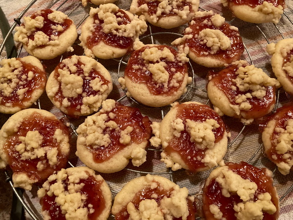 Und, ganz frisch aus dem Backofen, die Erdbeer-Streusel-Taler.