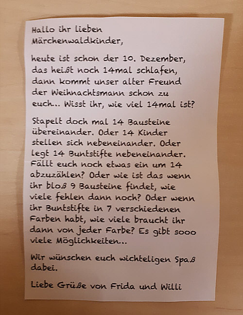 vor dem Frühstück, wo in diesen Tagen der Wichtelbrief gelesen wird.