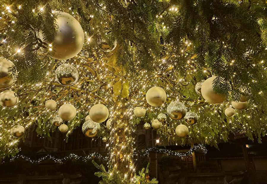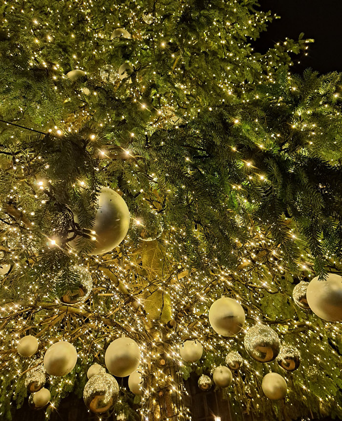 und Brigida und dem großen goldenen Weihnachtsbaum in Aachen.