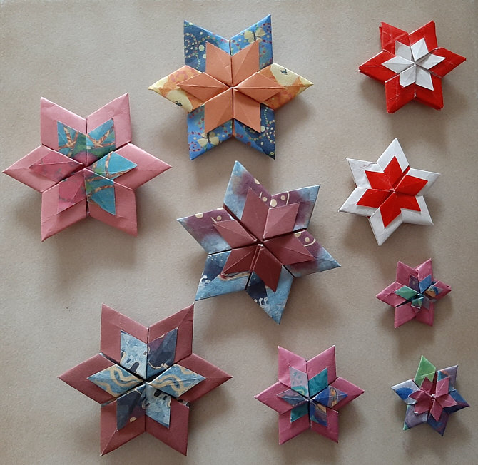 Faltsterne aus zwei gleichseitigen Papierdreiecken