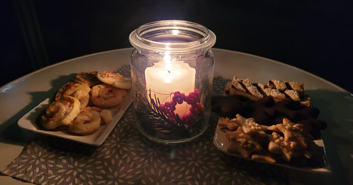 und eine Kleinigkeit zu essen wie Gebäck und gemütliches Beisammensein.