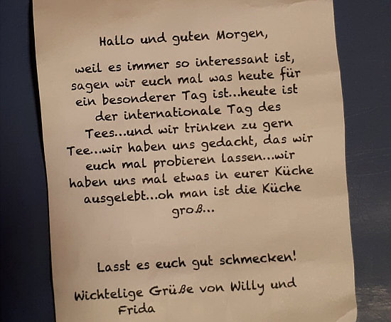 Aber da die Vorschulkinder aus organisatorischen Gründen heute keinen Tee
