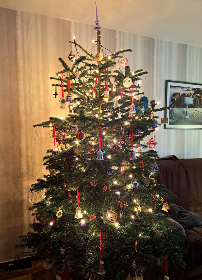 Nun steht auch bei Schpatz der Weihnachtsbaum ... zuerst ohne