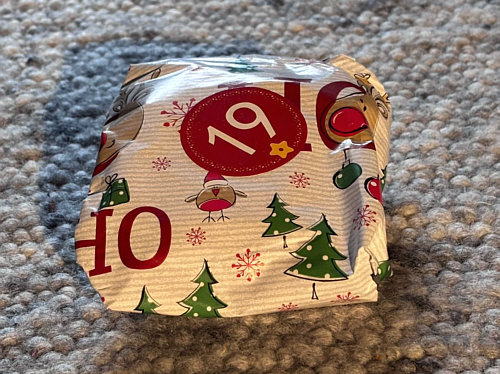 mit ihr zusammen die nächsten drei Päckchen öffnen.