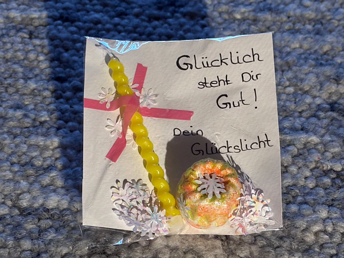 Heute gab es ein Glückslicht: ein kleiner Napfkuchen mit Kerze.