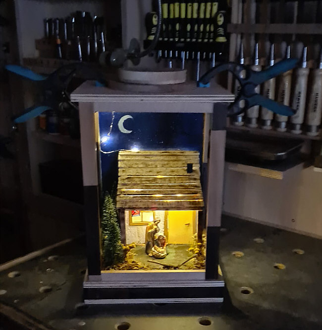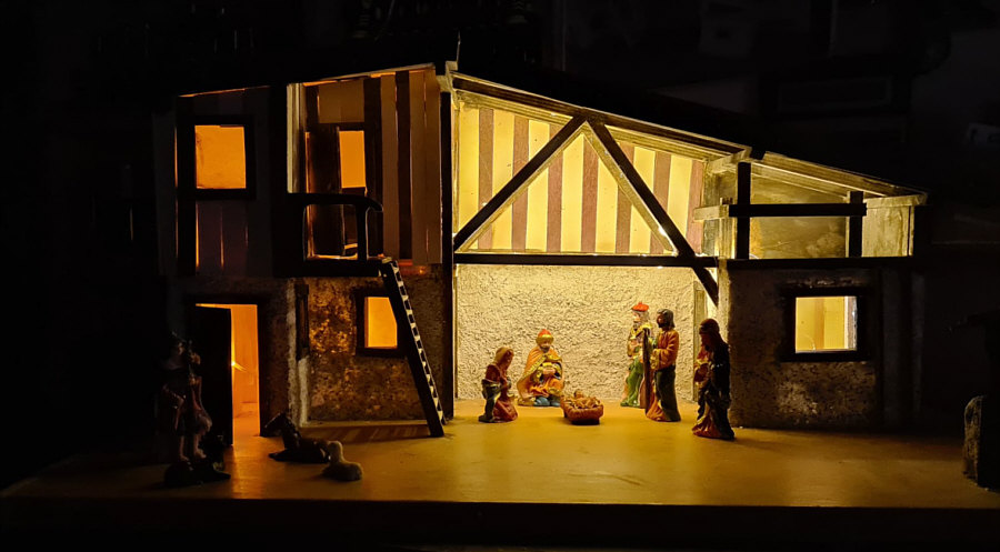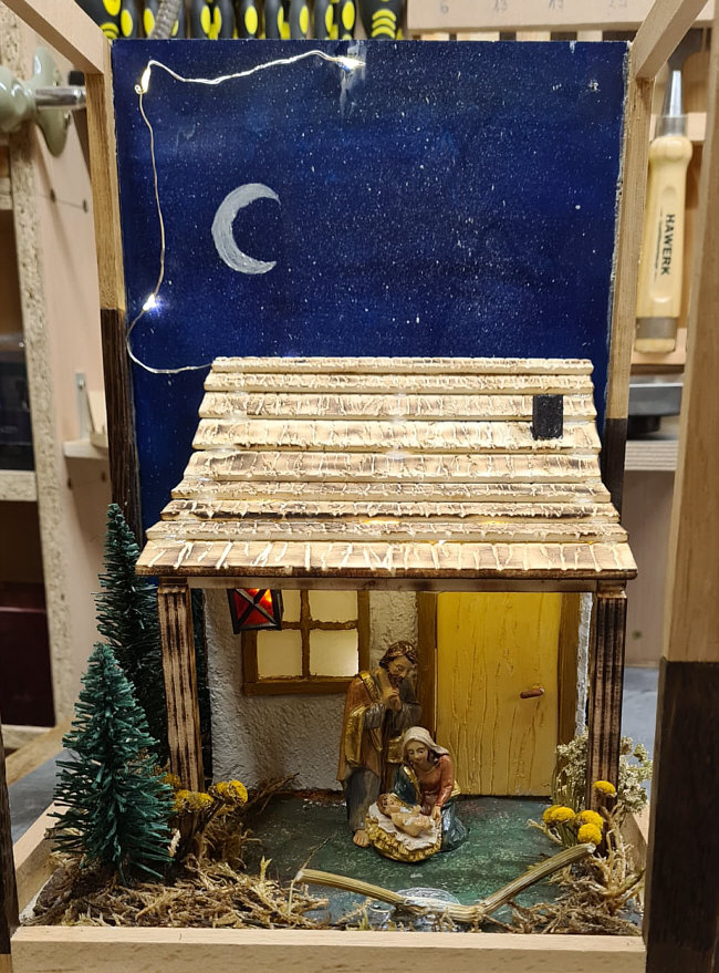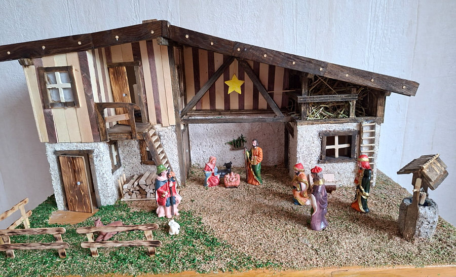 denn diese Krippe wurde von Birgits Mann alleine gebaut und