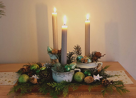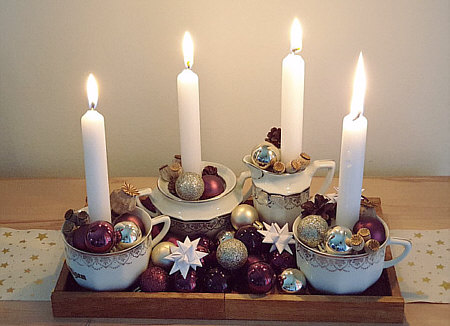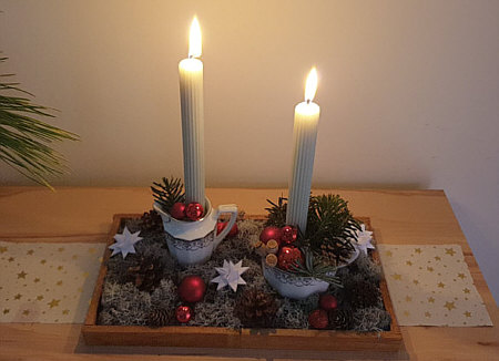 Holztablett Nochmal die Holztablett-Parade von Elfi S. vom 1.-4. Advent ... ... und so sah es an Weihnachten aus: Für Silvester wurde erneut umdekoriert: weiter