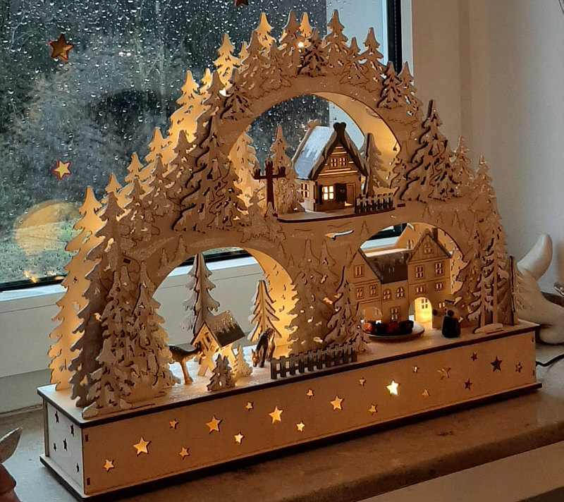 am Fenster gibt es auch Sterne und untendrunter dieser Schwibbogen: