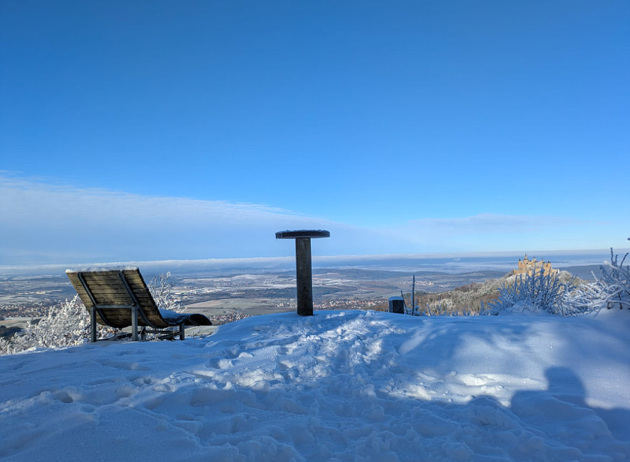 Schnee suchen Das stand ... ![]() ... im Status von Gise. Gesagt getan ... und schon war Gise unterwegs. Und ab dem Landkreis Tübingen war auch nichts mehr vom Nebel zu sehen: ![]() Ganz anders aber ... ![]() ... auf dem Parkplatz, von dem aus es zum Aussichtspunkt ging. 40 km von daheim entfernt. Auf halber Strecke ... ![]() ... zum Aussichtspunkt hatte Gise den Nebel abgehängt. Durch tiefen Schnee stapfen ging es weiter. ![]() ![]() So viel Schnee ! ![]() Blick auf die Burg Hohenzollern. ![]() Wie man sieht, liegt im Tal kein Schnee mehr. ![]() ![]() ![]() ![]() ![]() Ein Schifahrer ... ![]() ... lies sich von einem Schirm ziehen. ![]() ![]() Ganz prächtige Aussichten. Wieder am Parkplatz ... zur Erinnerung ... so sah es am Parkplatz beim Ankommen aus: ![]() Und nun das gleiche Bild, als Gise wieder zurück kam: ![]() Wieder daheim ... ![]() ... lag dort natürlich immer noch kein Schnee, aber der Nebel war weg und auch hier fand die Sonne einen Weg durch die Wolken. Schnee gesucht ... und Schnee gefunden. Und keinen Grund mehr, ein wenig neidisch auf die andere Status zu sein, sondern selbst solche Bilder im Status haben :). |