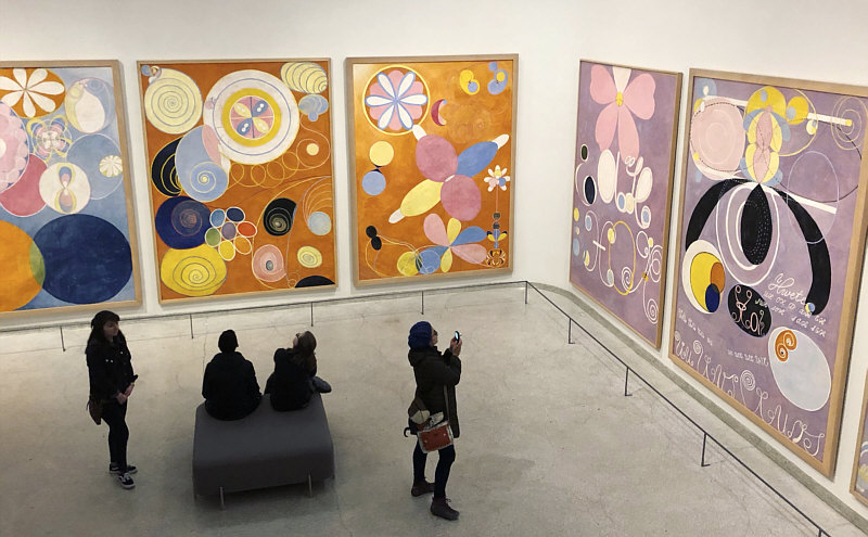 ![]() Man sieht es ihr nicht an ... ... aber dies ist eine Pionierin der abstrakten Malerei und gilt als eine der hervorragenden Malerinnen des frühen 20. Jahrhunderts. Sie hat ihr Gesamtwerk zeitlebens nie ausgestellt und verfügt, dass es frühestens 20 Jahre nach ihrem Tod ausgestellt werden darf. Erst in den 1980er-Jahren wurden ihre Werke international bekannt und anerkannt. Das ist Hilma af Klint eine schwedische Malerin, die 1862 geboren und 1944 gestorben ist. Sie hat ganz tolle Kunstwerke erschaffen: ![]() Altarbild Nummer 1, Gruppe X (1907) ![]() Die Taube, Nummer 1 (1915) ![]() Der Schwan, Nummer 10 (1915) ![]() Der Schwan, Nummer 18 (1915) Und dann gibt es noch die Bilderreihe "die zehn Größten". 1907 hatte Hilma eine Vision, die die Entstehung von "zehn paradiesisch schönen Gemälden" voraussagte, welche der Welt einen Einblick in die verschiedenen Lebensabschnitte (Kindheit, Jugend, Erwachsenenalter und Alter) gewähren würden. Einen Monat darauf begann sie mit der Arbeit an diesen zehn großformatigen Bildern, die jeweils 240x320 cm groß sind. Aufgrund der Größe entstanden diese Bilder wahrscheinlich auf dem Atelierboden - ganz anders als die damaligen Konventionen der Staffeleimalerei. Die Bilder hängen ... ![]() ... im Guggenheim-Museum in New York. Ich zeige diese 10 Bilder natürlich auch einzeln: ![]() Kindheit 1 ![]() Kindheit 2 ![]() Jugend 1 ![]() Jugend 2 ![]() Erwachsenenalter 1 ![]() Erwachsenenalter 2 ![]() Erwachsenenalter 3 ![]() Erwachsenenalter 4 ![]() hohes Alter 1 ![]() hohes Alter 2 Heute im Portrait: Hilma af Klint |