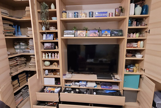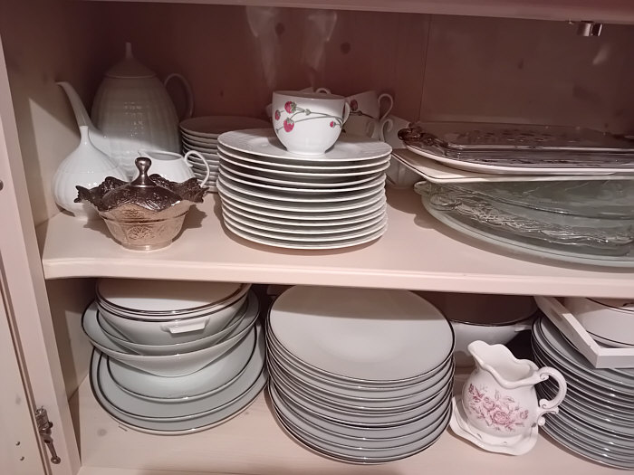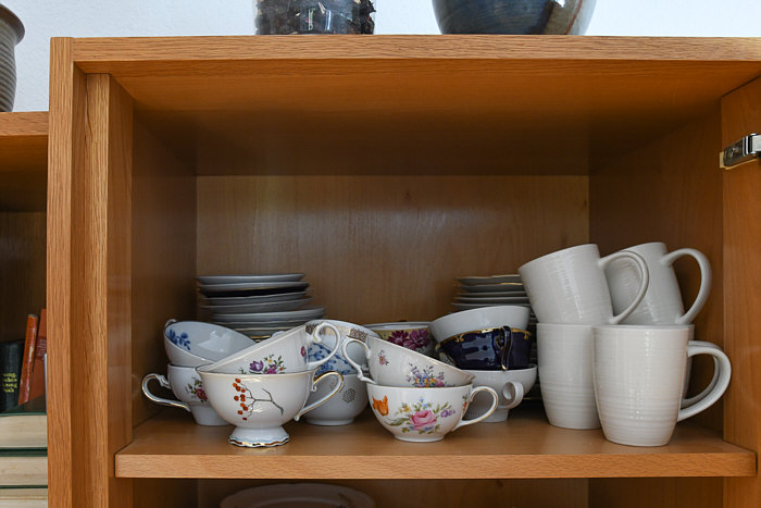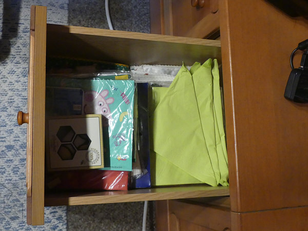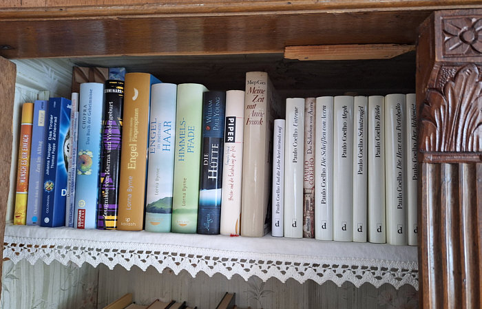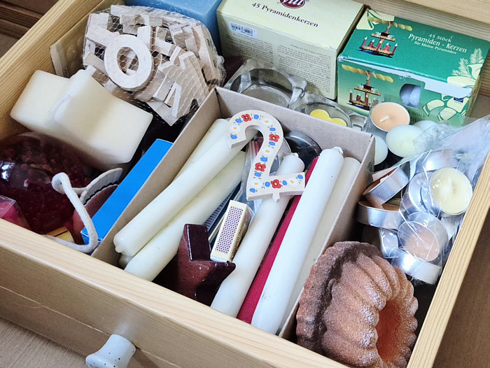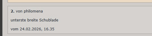 Willkommen bei der dritten Bilder-Mitmachaktion Teil 2 Die Überschrift: Indoor-Fotografie. Es gibt immer wieder eine neue Aufgabe. Die Aufgabe war: "fotografiere im Wohnzimmer deinen größten Schrank" mit dem Zusatz "Schicke mir das Bild ... ich werde dich dann bitten, ein ganz bestimmte/s Fach/Schublade zu öffnen und mir zu zeigen und zu sagen, was dort drin ist." Sensationell ... von den 16 Seelenfärbler/innen, die mir ein Schrankbild geschickt hatten, haben fast alle auch das Fach oder die Schublade geöffnet und zeigen, was drin ist. Bis auf eine Seelenfärblerin, die meinte, ich hätte das falsche Fach ausgesucht, dort wären nur Zeitschriften und alte Kataloge drin ... hey, es gibt doch kein falsch oder richtig, sondern nur Glück und Pech und Zufall, welches Fach ich spontan gerade ausgesucht hatte. Aaalso ... ich darf nun 15 Schränke auflösen ... freu :)). Meinen eigenen Schrank hatte ich auch im Tagebuch gezeigt ... ![]() ... und gebeten, zu kommentieren, welches Fach ich öffnen soll. Ich hab dann unter allen Kommentaren einen ausgelost ... ![]() ... und der Kommentar Nummer 2 war dieser: ![]() Und, oh so sorry ... es tut mir wirklich leid ... diese Schublade ... ![]() ... ist leider leer. Da waren bis Ende Januar die Weihnachts-Bücher und Zeitschriften drin, die habe ich, weil ich doch nicht reingeschaut habe, dann rausgenommen und an Beate zum Sichten und Aussortieren weitergegeben. Und so ist die eine Schublade mit den zwei Fächern im Moment leer, so lange, bis ich mich entschieden habe, was ich dort nun reinlege. Falls jetzt jemand denkt ... ganz sicher hätte ich so lange eine Zahl generieren lassen, bis diese Schublade dran ist ... ah Schmarrn ... ich hab kein Problem damit, den ganzen Schrank mit geöffneten Türen zu zeigen: ![]() Jetzt aber zu den Seelenfärbler-Schränken ... zuerst der Schrank, dann die Auflösung. Und jetzt sogar mit Namen. 1 ![]() ![]() Schnecke schreibt: "Eine typische Krusch-Ecke :)" --- 2 ![]() ![]() Xenophora schreibt: "Es sind meist nur Teller und Schüsseln. Und ein kleiner Glaskrug, den mir mal eine Nachhilfeschülerin geschenkt hat. Besonders hänge ich noch an dem Wagenfeld Salz- und Pfefferstreuer aus der WMF, den ich mir vor 60 Jahren mal selbst gekauft habe." --- 3 ![]() ![]() Ladybird schreibt: "Bitteschön, die "Kerzenschublade" - Teelichter, Haushaltskerzen, Pyramidenkerzen, Weihnachtsbaumkerzen, Geburtstagskerzen, Teelichthalter, Streichhölzer ... und Holzbuchstaben zum Basteln". --- 4 ![]() ![]() Liane schreibt: "der Schrank war mal der Kleiderschrank meiner Urgroßmutter. Ich hab dann Einlagebretter montiert und ihn zum Bücherschrank umfunktioniert. Er platzt bald aus allen Nähten, die Bücher stehen schon in Zweierreihen." --- 5 ![]() ![]() Therese schreibt nix weiteres dazu ... ist vielleicht selbsterklärend ;). --- 6 ![]() ![]() Christine R schreibt auch nix, aber man sieht, dass das das Geschirrfach ist. --- 8 ![]() ![]() ![]() ![]() Karen schreibt: "da hast Du Dir mit sicherem Griff das langweiligste Fach im Schrank ausgesucht! In der Schublade liegen Servietten, ein Päckchen mit Teelichten und Schmuckbänder für verschiedene Anlässe. Von den 6 Bändern habe ich 4 selbst bestickt, nur die Weihnachtsbänder sind gekauft. Die Bänder kommen auf den festlich gedeckten Tisch - drunter natürlich ein Tischtuch, das dann "nicht" gemustert sein sollte. --- 9 ![]() ![]() Greta schreibt: "da hast Du Dir ja die versteckteste Schranktüre ausgesucht, ich musste erst mal "Möbel schieben", um hinzukommen. In dem Fach stehen Schalen und Vasen, die ich nur noch sehr sehr selten nutze. Dahinter sind einige Schallplatten verborgen, wie es aussieht sind es Opernaufnahmen. --- 10 ![]() ![]() Lieserl schreibt: "Links sind Tischdecken. Für Wohnzimmer und Esszimmer, darum unterschiedliche Formate. Rechts unten Servietten und oben eine FC Bayern-Fahne und drunter eine neue Freistaat Bayern Fahne. Beide für den Fahnenmasten im Garten. Wenn jetzt wärmer wird, kommt die FCBfahne wieder raus. Und wenn die Saison vorbei ist, die Freistaat Bayern Fahne" --- 11 ![]() ![]() Ingolf: "... da hast Du eine gute Wahl getroffen, dieses Fach ist vorzeigbar ;-). Im Fach befinden sich überwiegend Sammeltassen, alles Erbstücke unserer Mütter. Sie sind nicht allzu oft im Einsatz, aber eine größere Kaffeetafel mit weißer oder einfarbiger Tischdecke und den Tassen sieht schon hübsch aus. Der Schrank stammt übrigens noch aus DDR-Zeiten, eine Arbeit unseres ortsansässigen Tischlers, auf die wir 10 Jahre warten mussten." --- 12 ![]() ![]() Gudrun aus der Oberlausitz schreibt: "Das ist mein Büchertisch-Schrank. In unserer Gemeinde bin bzw war ich für den (Weiter-)Verkauf von Büchern, Karten, CDs uä zuständig. Deshalb hab ich jede Menge Kataloge von verschiedenen Buchverlagen. Außerdem müssen die Rechnung u Gutschriften u das eingenommene Geld irgendwo gelagert werden. Dafür ist hier ausreichend Platz." --- 13 ![]() ![]() Mira I schreibt: "Da rufen viele Papiere: "Hol mich hier raus" !!!!! - Vielleicht kannst du das Flehen hören ..." --- 14 ![]() ![]() ![]() Onyxia schreibt: "Normal ist das meine Deko-Schublade, da steht sonst noch die Glasschale vom Couchtisch drin. Jetzt müssen die "Restchips" von meinem Geburtstag noch mit rein ..." --- 15 ![]() ![]() Belo schreibt nix dazu ... hat aber noch dieses Bild beigelegt: ![]() Zur Info ... die Kronjuwelen-Konfirmation feiert man 75 nach der eigentlichen Konfirmation. --- 16 ![]() ![]() Lieschen schreibt: "wer A sagt muß auch B sagen ... nun kommt mein Schrank, deine ausgewählte Türe zum Anschauen nun innen. Da ich schon immer gerne und viel fotografiert habe, siehst du meine Alben, damals wurde ja nur mit Film geknipst und dann die Bilder ins Album. Hier von links die ersten, ungefähr 1/4 siehst du. Die werden noch oft raus geholt und nachgeschaut, was war wann ? weißt du noch ? Ist so sehr praktisch, ob man die digitalen Bilder auf dem Handy, sollte mal was bestimmtes gesucht werden, 