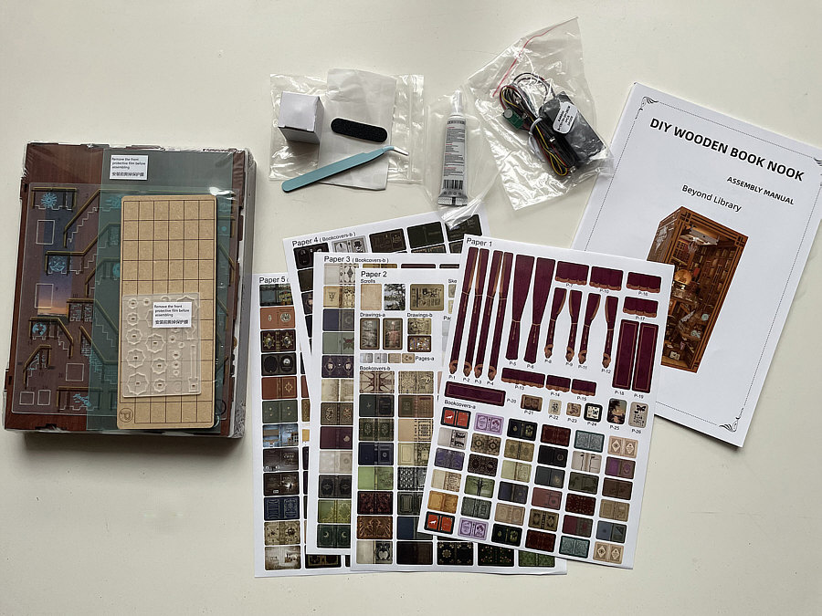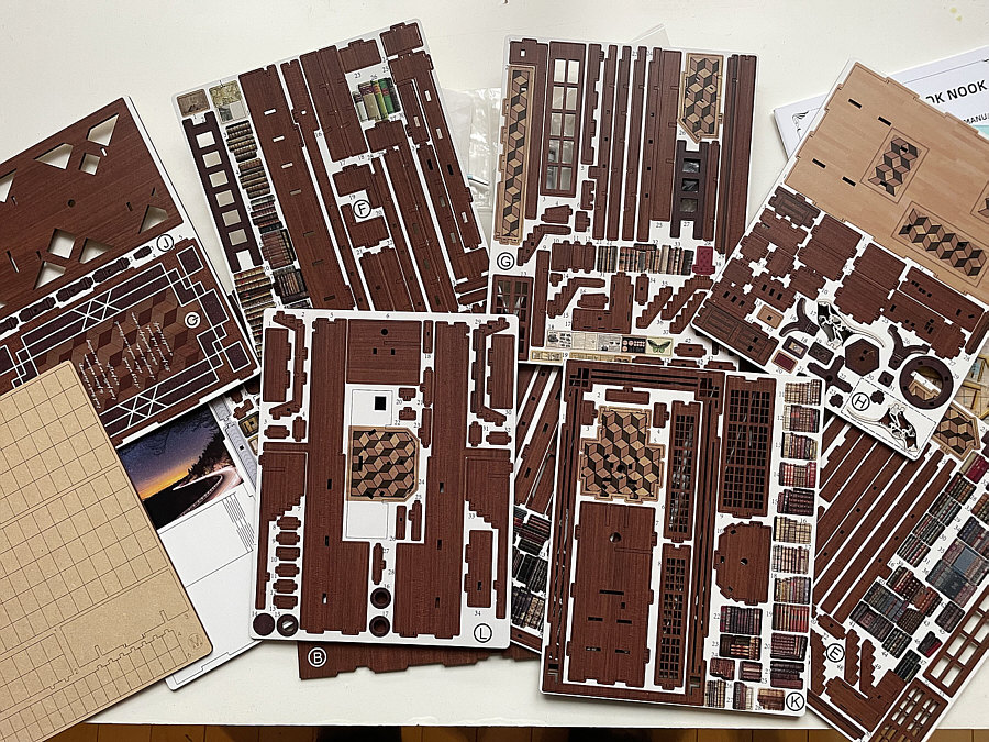 Das war mein Tagebucheintrag vom ... ![]() ... 1. Februar ... es gab gemischte Kommentare von meinen Lesern. Von wunderschön bis Kitsch, von hübsch bis hässlich. Auch Hans hatte kommentiert: ![]() Und dieses "bald" war dann schon 3 Tage später ... so schnell kanns gehen ;)). Hans hat das alles mit der Kamera begleitet, so dass wir den Zusammenbau dieses Book Nook so verfolgen können, als würden wir Hans über die Schulter schauen. Hans zeigt und schreibt: ![]() Das Book Nook ist da! Das Paket hatte immerhin gute 1.600 Gramm, ist also kein Leichtgewicht. Aber da viel Holz dabei ist, wundert das auch nicht. Und ja – natürlich – es kommt aus China. ![]() Die Plastikverpackung ist entfernt und es kommt der Inhalt innerhalb eines weißen Kartons zum Vorschein. Gut gelagert und ohne Schaden scheint alles da zu sein. ![]() Die Holzbauteile links, Elektro-Anlage oben, genauso wie eine Pinzette, Kleber und anderes Material. Rechts die Bauanleitung und unten die ganzen Aufkleber. ![]() Die Bedienungsanleitung ist zum Glück nicht nur auf Chinesisch. Mein Bauanleitungen-Englisch ist zwar auch nicht das Beste, aber im Zweifel hilft Google. ![]() Viel Holz, viele Bauteile, aber alle gut erkennbar nummeriert und die einzelnen Platten sind mit Buchstaben versehen. ![]() Das also sind die vier Bauphasen. Mal sehen, ob es gelingt. ![]() Die ersten Schritte und die ersten aufgeklebten Bildchen. (Ich habe prompt eines übersehen, macht aber nichts). Die Pinzette ist hier manchmal schon von Nöten. ![]() Ein Vergleich mit einem Cent-Stück zeigt, dass man hier auch diffizil arbeiten muss. ~~**~~ Ähmm ... ehrlich ... das wäre nichts für mich. Da werde ich beim Hinschauen schon fast nervös. Aber ich bewundere Hans, dass er sich dieser Aufgabe widmet. Und ich bin sehr gespannt, wie es weiter geht ... wird natürlich fortgesetzt. |