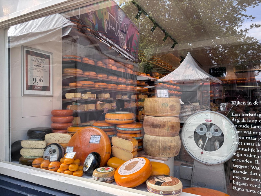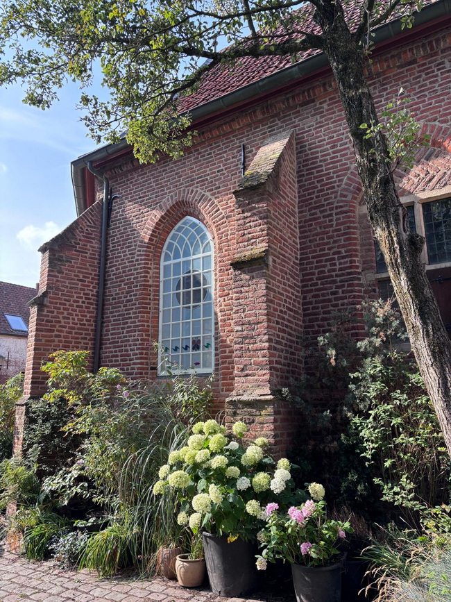 Flusskreuzfahrt MS Annika mit Margot, Teil 8 (Teil 1, Teil 2, Teil 3, Teil 4, Teil 5, Teil 6, Teil 7) Margot zeigt und schreibt: ![]() Montag morgen, 7 Uhr ... es will gar nicht hell werden, obwohl der Vorhang jetzt immer halb geöffnet ist?! Wir liegen in Nijmegen auf der dunklen Seite des Anlegers. ![]() Ich drehe wieder eine kleine Runde ohne an der großen Führung teilzunehmen, sodass meine Reisebegleiterin nicht zu lange alleine ist. ![]() ![]() Bilder von der Jakobuskapelle. Hier beginnt die Etappe Nimwegen-Köln des berühmten Pilgerweges. ![]() Empfehlung als typisches Mitbringsel, sowie Delfter Blau Keramik, Holz-Klompen oder Karamellwaffeln. ![]() Draußen sitzen war am Vormittag noch etwas ungemütlich. Aber diese Sitzgruppe hatte auch so eine gemütliche, geborgene Ausstrahlung. ![]() Die Waag, 1612 erbautes Gebäude mit Stadtwaage. ![]() Ein Blick zum Grote Markt. ![]() Wer's glaubt ... ;). ![]() Der Markt von der anderen Seite. ![]() Ein Kriegerdenkmal, das man bei uns nicht sieht. ![]() Erkennst du, was dort in der Kastanie hängt? ![]() Bei dieser Einkaufsstraße auf zwei Ebenen erkennt man es besser: Gladiolen. Die Gladiole, Zeichen der heiligen Anna, steht für Stärke und Sieg. Nijmegen ist die eine der ältesten Städte der Niederlande und benennt die St. Annastraat einmal im Jahr in die Via Gladiola. Hier werden die Teilnehmer des viertägigen Nijmwegen-Marsches angefeuert und wie einst Gladiatoren (gladius = Schwert= schwertartige Form der Galdiole) begrüßt. Zum 107. Mal fand die Veranstaltung dieses Jahr statt, leider einige Tage nach unserem Zwischenstopp. Bestimmt ein beeindruckendes Spektakel. An vier Tagen werden Etappen von 30, 40 oder 50 km gelaufen und es sind 50000 Teilnehmer aus 70 Ländern angemeldet. An mir ist dieser Lauf bisher vorbeigegangen. ![]() Ein schickes Brauereigebäude. ![]() Der Duft hat mich angelockt, bevor ich diese Pracht sehen konnte. ![]() Die Fluttore sind ein wichtiger Schutz vor Überschwemmungen. ![]() Nach diesem Gebäude musste ich etwas länger suchen in den verwinkelten Gassen. Erkennst du an den Fenstern, was es ist? Und die Lutherstraße führt daran vorbei. Er hätte sich als Antisemit im Grabe umgedreht, wüsste er davon. ![]() Die Synagoge von der Vorderseite. ![]() Ein Fenster mit Perlenschnüren und Perlenketten statt Gardinen. Letztere sind in den Niederlanden nicht populär, weil es eine Gardinensteuer gab. Typisch ist der offene Blick ins Haus und zwei gleiche Dekorationselemente auf der Fensterbank. Das wird heute (zumindest in den touristischen Ecken) seltener. Häufig versperren Plissees den Einblick in die gute Stube. ![]() Zurück an Bord eine kleine Stärkung und Abfahrt um 14 Uhr. ![]() Herrliche Natur mit Herden von Büffeln, Schafen und Pferden beobachten wir, während das Schiff sanft dahin gleitet. ![]() Am Nachmittag gab es Informationen zur Ausschiffung und natürlich Kaffee und Kuchen. Dann umziehen für das Galadinner. Auch die Serviette hat sich herausgeputzt. ![]() Von den vielen Gängen nach Aufmarsch und Würdigung der Crew verwöhnte uns die Küche mit zahlreichen Gängen und einem hübsch dekorierten Dessert. Das zeitgleich für 162 Reisende aufzutragen ist ein Meisterwerk. ![]() Adieu, Holland ! ![]() Letzte Momente im Bett liegend genießen: so ruhig die Landschaft vom Wasser aus dahin ziehen zu sehen gefällt mir. ![]() Morgens um 8 in Köln. Mit diesem Ausblick begann und endete unsere Reise. |