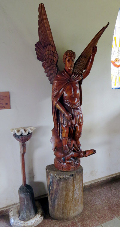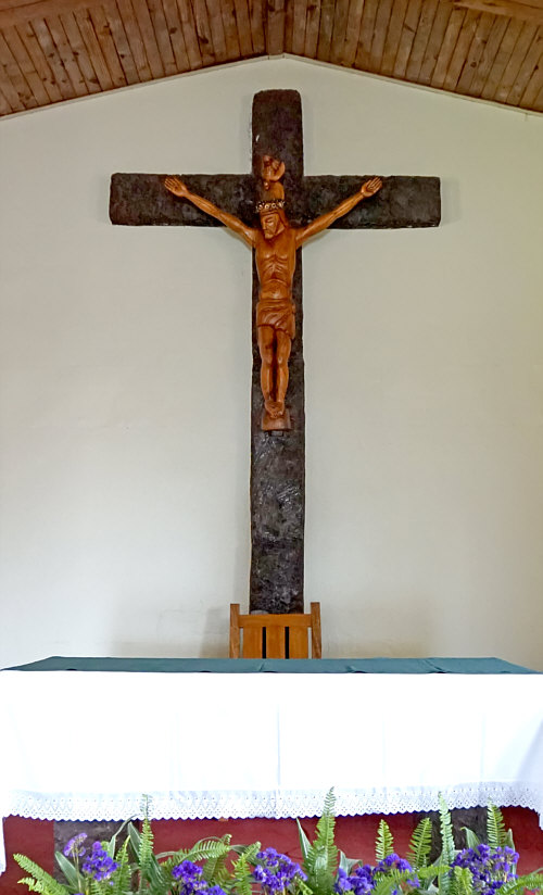 Warum hat die Osterinsel genau diesen Namen ? Weil ein Herr Jakob Roggeveen diese Insel am Ostersonntag 1722 entdeckt hat. Auf der Insel, die 24 km lang und 13 km breit ist, gibt es genau eine Kirche und dort sind wir heute. ![]() ![]() Die Kirche vereint die symbolischen Formen der Kirche mit denen aus der Mythologie und Tradition der Rapa Nui. ![]() Schnitzerei der Jungfrau Maria mit dem Jesuskind ![]() Der Erzengel Michael ![]() Die Heilige Familie, aus einem einzigen Baumstamm geschnitzt. Die Skulptur zeigt den heiligen Josef, die Jungfrau Maria und das Jesuskind. In der Mitte befindet sich ein Vogel, der den Heiligen Geist symbolisiert. ![]() Eine Statue der heiligen Therese von Lisieux mit dem Vogelmann-Symbol auf ihrem Arm. ![]() Ein großer, geschnitzter Schrank zur Aufbewahrung der Eucharistie. ![]() Der heilige Franz von Assisi ![]() Das ist die Jesusfigur hinter dem Altar. Bevor ich den Innenraum zeige, hier noch ein Bild der Kirche bei Nacht: ![]() So sieht der Innenraum der Kirche aus: ![]() Willkommen in der Sonntagskirche von Seelenfarben :)). Deine Gedanken zur Kirche und zum Innenraum ? |