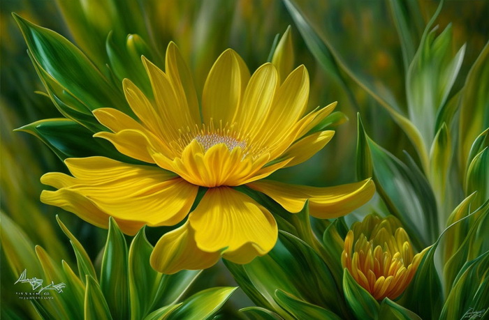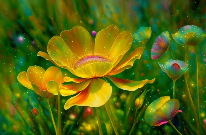 Bild 2 + "incredible wonderful flower, photorealistic acrylic art, a